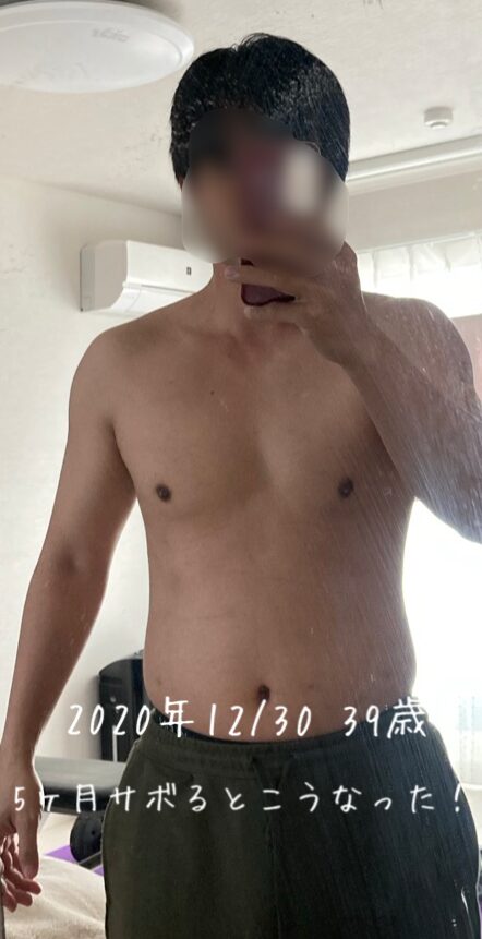 その結果このように身体は劣化していきました。お腹周りが本当にヤバいです。