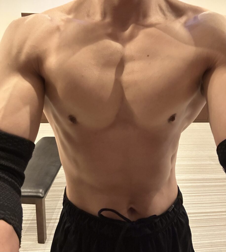 僕は筋トレガチ勢ではないですが、トレーニングを習慣にすればこれくらいの身体にはなれます。太っていた時期もありましたが、継続さえすればこうなれます!