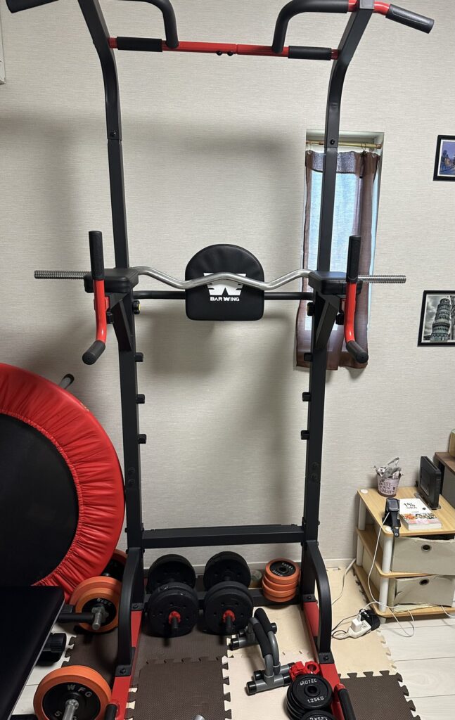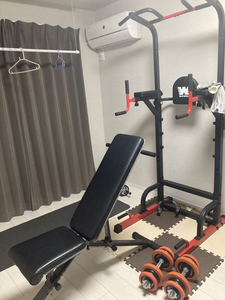 このままじゃいけないと思い、リクライニングベンチ、懸垂、ダンベルプレート、EZバーを購入しました。