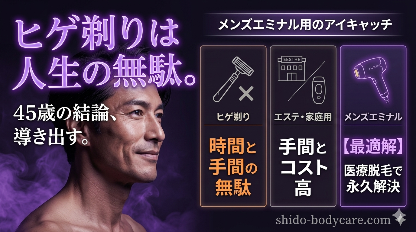 【45歳の結論】ヒゲ剃りは人生の無駄。エステ・家庭用と比較しメンズエミナルを選んだ理由
