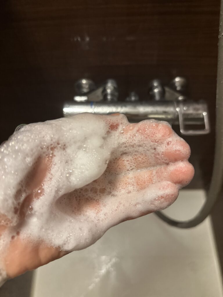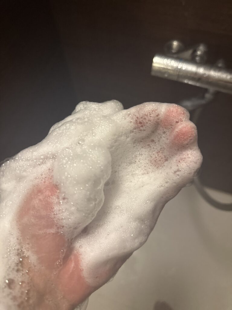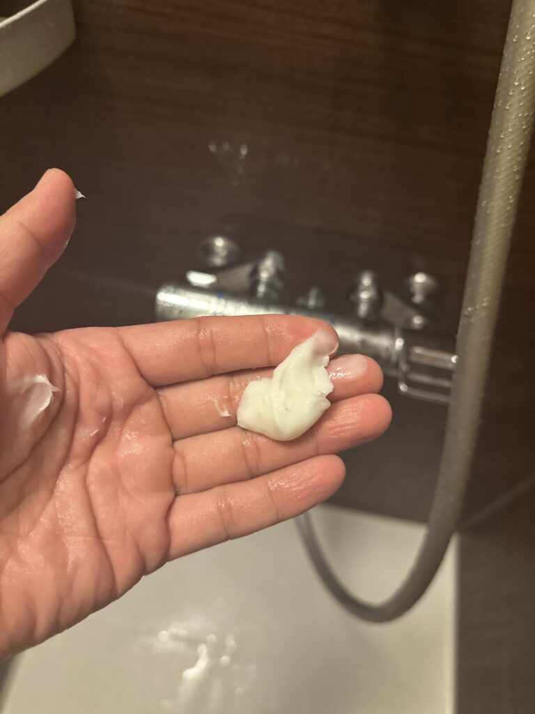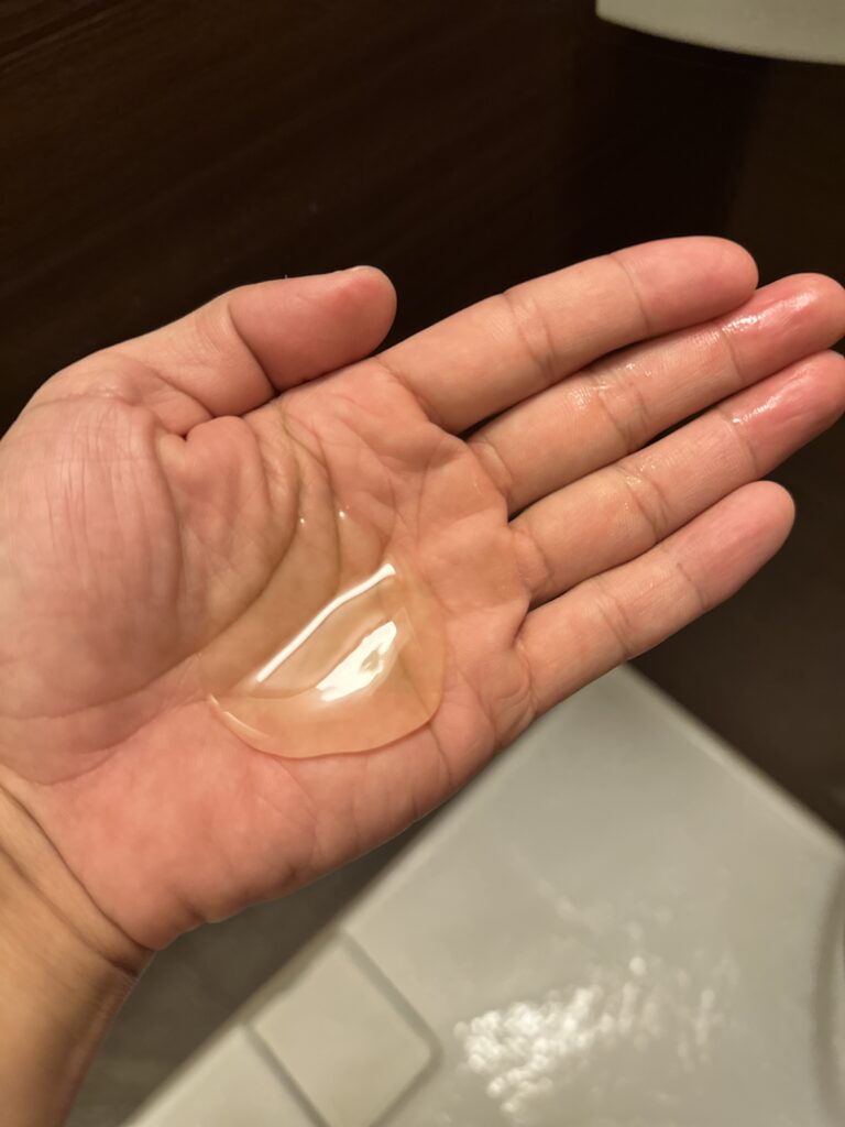 黒と同じく一般的なシャンプーと比べて粘度が高いです。そして匂いが強いです。泡立ちは黒の方が良く感じました。